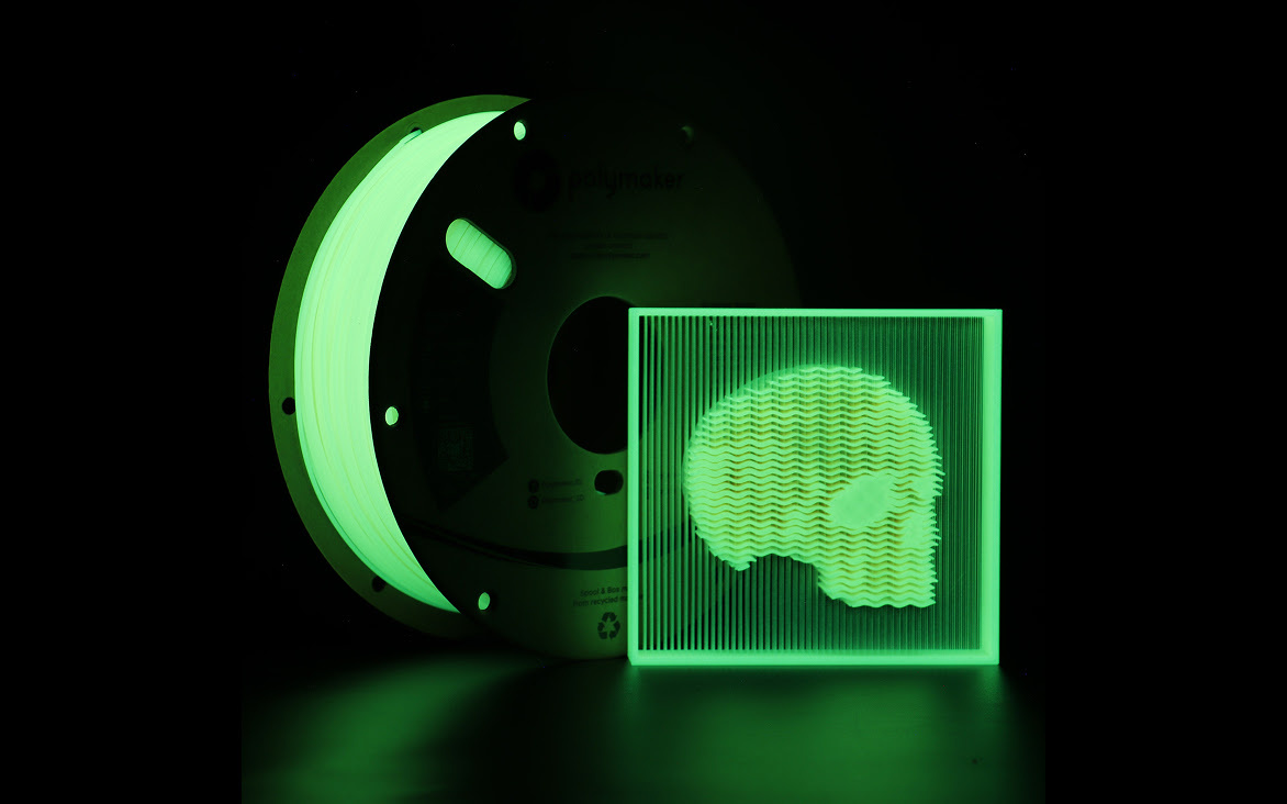 Glow-in-the-dark PLA filament with matching daylight colours. This specialty material glows brightly in the dark. Ideal for toys, signage, and creative 3D printing projects. Requires a hardened nozzle for best results.